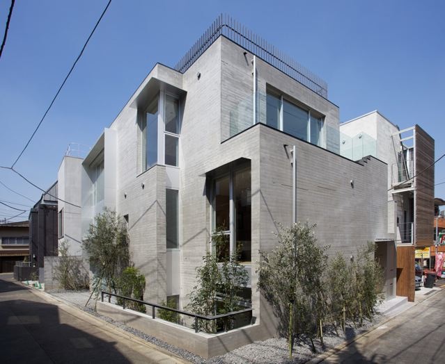 RC造で地下1階、地上2階、屋上、敷地面積50坪に建てられた夫婦+子供2人のための住宅です。